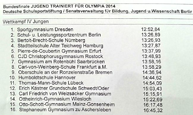 24.09.2014 | HenkerUnsere Jungs haben heute beim Schwimmen mit über 30 Sekunden Vorsprung ziemlich souverän gewonnen. Glückwunsch! Die Damen der Leichtathletik haben einen undankbaren 4. Platz gewonnen, mit nur 7 Punkten am 3. Platz hinter Saarbrücken.