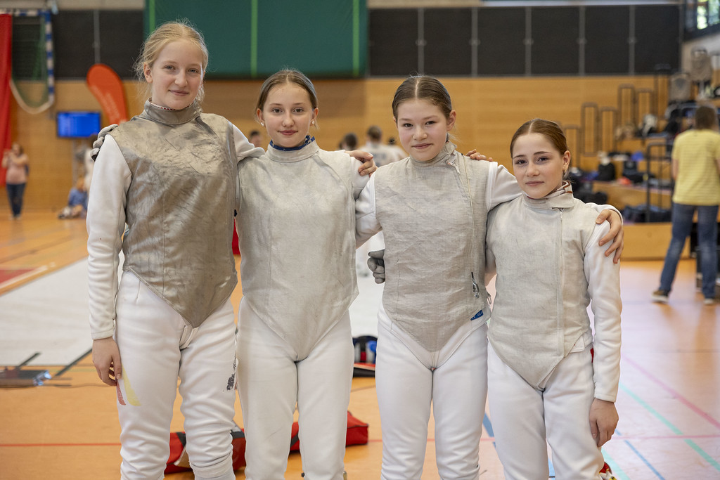 Am Sonntag ging es dann im Länderpokal um die Mannschaftstitel. Jeweils drei bis vier Fechter aus einem Bundesland bilden hier ein Team. Im Damenflorett bestand das Team aus den Radebeulerinnen Cora Schaller, Hannah Sibilla und Ersatzfechterin Lina Wemme. Ergänzt wurde die Mannschaft von der Dresdnerin Marie Gröblehner. Gemeinsam holten sich die vier Damen zunächst drei Siege in der Vorrunde gegen Württemberg, Nordrhein III und Westfalen III. Im Achtelfinale wurde dann das Team aus Sachsen-Anhalt deutlich mit 45:22 geschlagen. Im Viertelfinale gegen Westfalen I fehlten beim 40:45 nur fünf Treffer zum Einzug ins Halbfinale. Am Ende der 5.Platz für die Mädchen aus Sachsen.