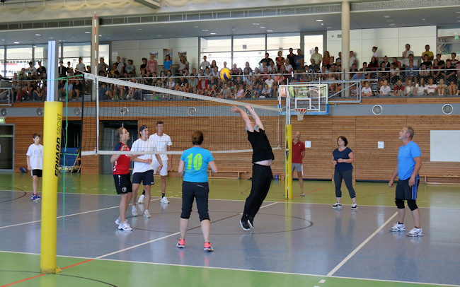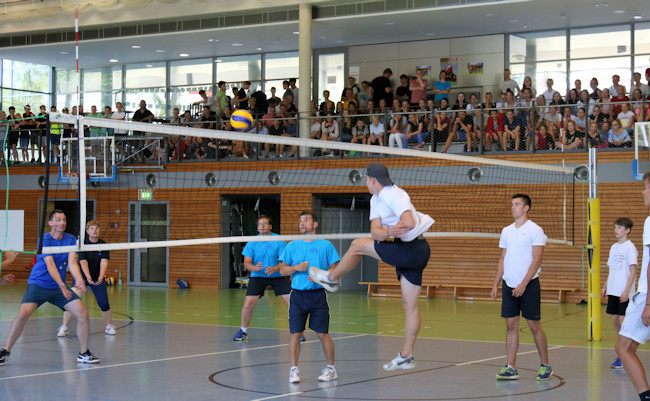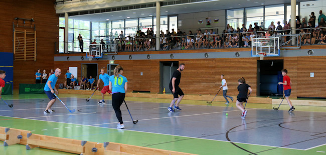 Dem Schulkino folgte das Lehrer-Schülerturnier am Nachmittag. Lehrerteams traten gegen Schülerteams im Volleyball und Unihockey an. Während die Schüler das Volleyballturnier knapp mit 2 zu 1 Sätzen gewannen, fegten die Lehrer die Schüler beim Unihockey regelrecht aus der Halle. Eine Revanche ist für das kommende Turnier schon sicher. Dafür wäre es schön, wenn sich noch mehr Schüler für das Turnier anmelden könnten.