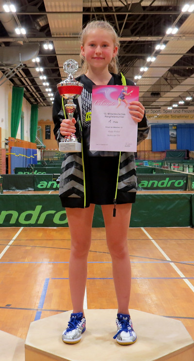 04.10.2019 | HenkerAm vergangene Wochenende fand in Döbeln die Mitteldeutsche Rangliste der Schülerinnen U13 statt. Im Vergleich mit den besten Spielerinnen aus Thüringen, Sachsen und Sachsen Anhalt wurde Katja Weller (6/2) mit nur einer Niederlage Mitteldeutsche Meisterin in ihrer Altersklasse.