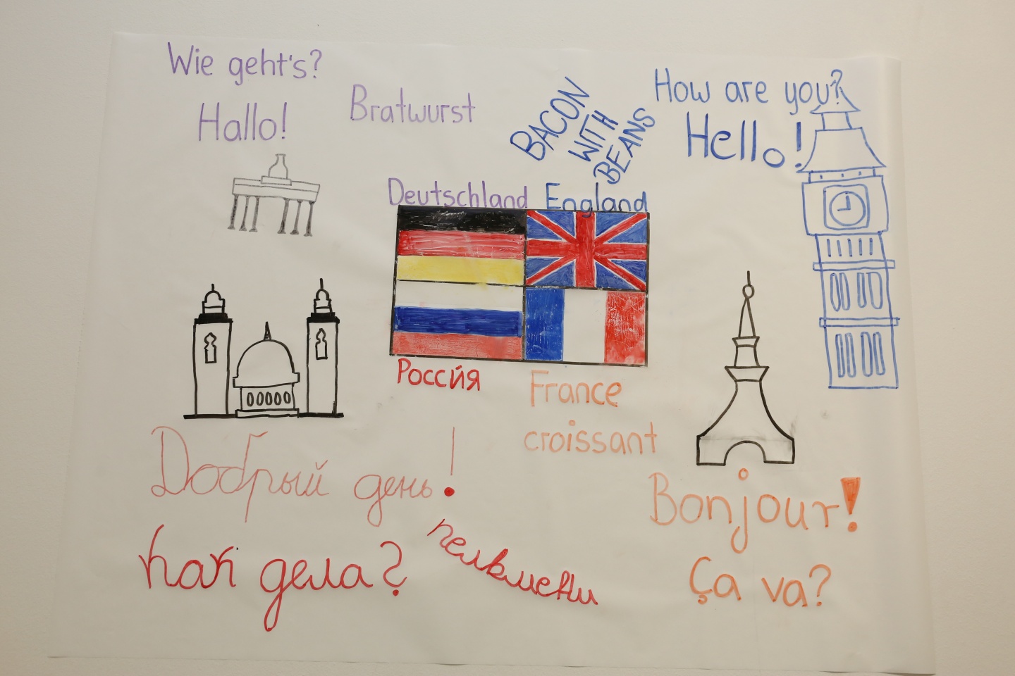 “Das Sprachenfest finde ich gut, weil man so auch einmal die anderen Sprachen kennenlernt. In Französisch haben wir Buttons gebastelt und in Russisch haben wir ein Brettspiel über die Sehenswürdigkeiten von Moskau gespielt.”