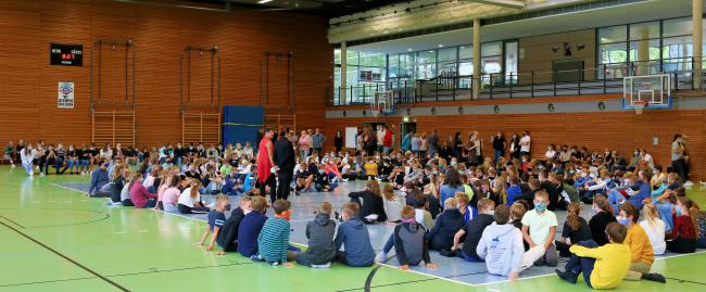 02.09.2020 | HenkerAm Montag begann das neue Schuljahr mit einer Begrüßung in der Turnhalle. Mit Mundschutz und viel Abstand zwischen den einzelnen Klassen konnten endlich wieder alle Schülerinnen und Schüler gemeinsam an einer Schulveranstaltung teilnehmen.