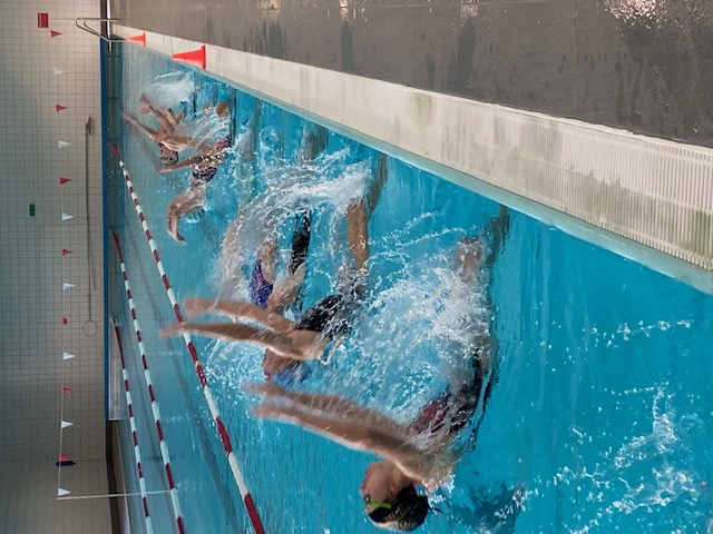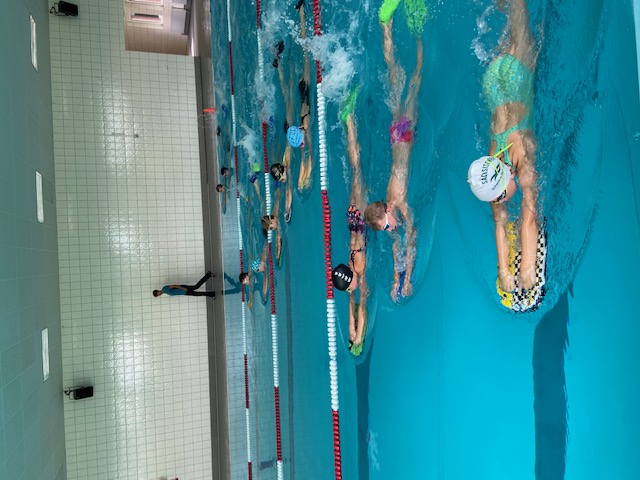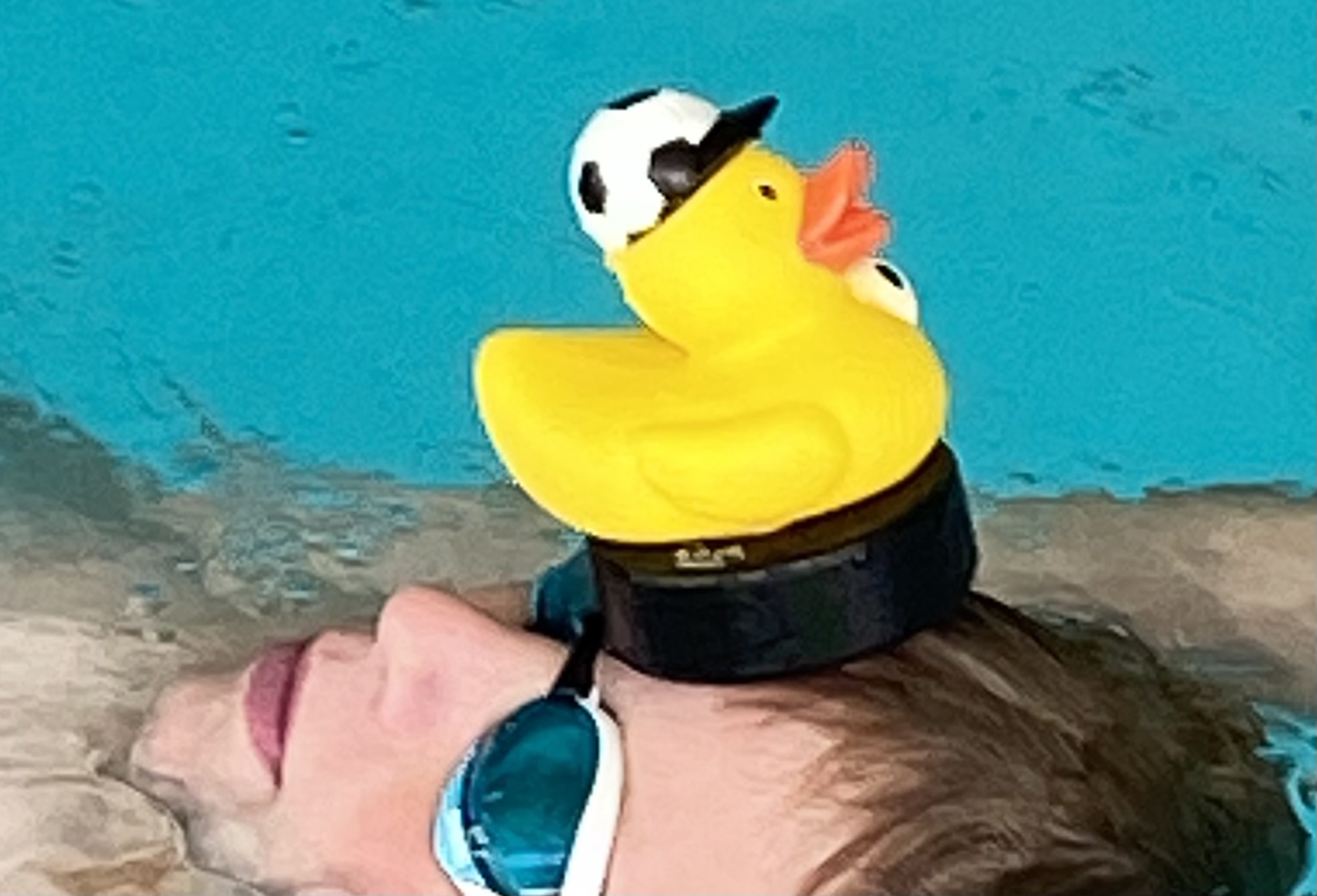 Und nach der Schule geht es wieder weiter mit Techniktraining in der Schwimmhalle. Um eine gute Wasserlage beim Rückenschwimmen zu trainieren, werden auch Hilfsmittel, wie z.B. Puck und Ente eingesetzt.