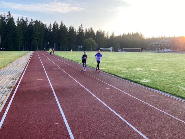Los geht der Trainingstag früh um sieben Uhr mit ein paar Runden Laufen in der Leichtathletikanlage, dann gibt es erst einmal Frühstück und danach ist eine Trainingseinheit im Wasser auf der 50m Bahn dran.