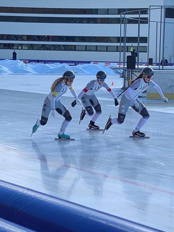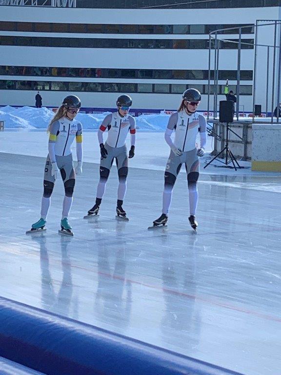 Vor einer Woche belegte das Team an gleicher Stelle und in gleicher Besetzung noch Platz 5. Im entscheidenden Rennen dieses Wettbewerbs (Team Pursuit) über 6 Runden, bei dem zwei Mannschaften zu je drei Läufern jeweils an der Mittellinie der einander gegenüber liegenden Geraden starten und die Zeit bei Überquerung des letzten Teammitglieds erfolgt, kam Deutschland hinter den siegreichen Niederländerinnen und dem Team aus Russland ein.