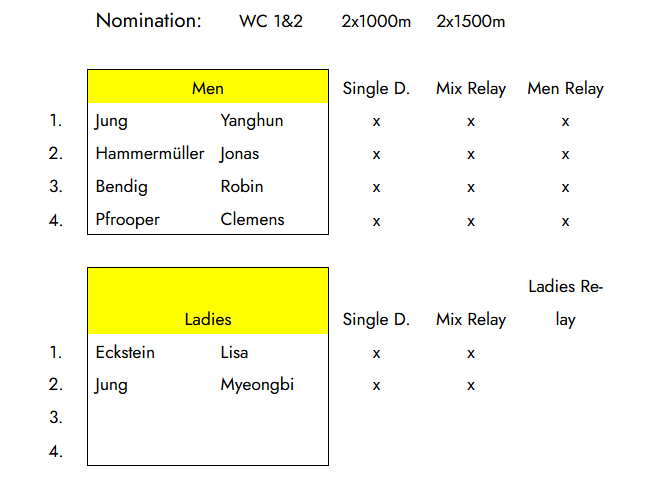 An den Start gehen Lisa Eckstein und Robin Bendig (ehem. SGD) als bekannte „Stammspieler“ der Nationalmannschaft. Verstärkt werden sie nunmehr als ein junges Team mit Ben Jung, Jonas Hammermüller, Clemens Pfropper (alle Abiturjahrgangsstufe) und Bi Jung (11S). Anna Seidel pausiert für ein Jahr. Folgende Einsätze sind geplant: