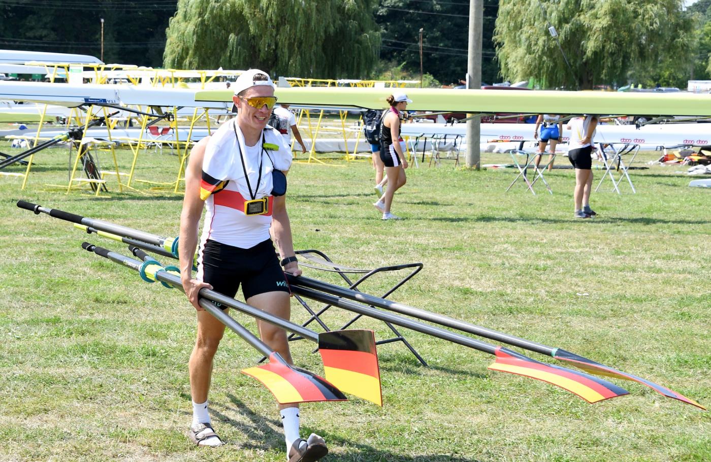 Fünf Nationen hatten in der anspruchsvollen, wenn auch leider nicht-olympischen Bootsklasse gemeldet. Schon im Bahnverteilungsrennen wurde deutlich, dass es ein sehr hartes Rennen im Kampf um die Medaillen wird. In dem Booten der anderen Nationen starteten physisch stärkere Mannschaften. Dennoch gab sich die junge deutsche Mannschaft mit den beiden Dresdnern an Bord kämpferisch. Im Finale fuhren sie couragiert vorne raus und konnten auch zunächst den Anschluss zum Feld halten. Doch auf der zweiten Streckenhälfte verschärfte sich das Tempo der anderen Teams. „Auch wenn die Platzierung es nicht widerspiegelt, bin ich durchaus zufrieden mit der Leistung unserer Mannschaft. Sie sind ein gutes Rennen gefahren und haben das Letzte aus sich rausgeholt. Die anderen Mannschaften waren dieses Jahr leider stärker als wir.“, zieht Trainer Tim Grohmann (Dresdner Olympiasieger) ein versöhnliches Resümee.