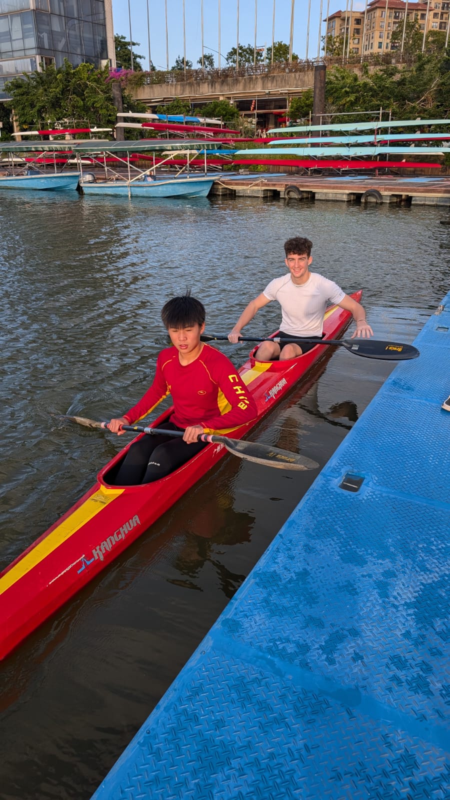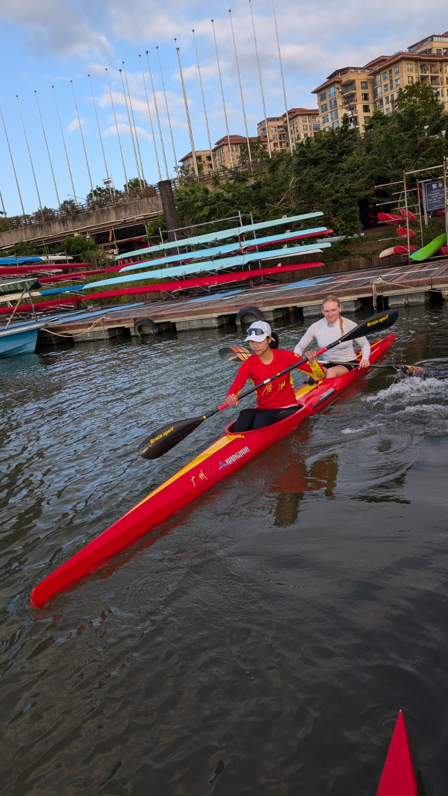 Acht Kanutinnen und Kanuten und zwei Trainer aus Dresden und Leipzig sind für fast drei Wochen nach China geflogen. Auch wenn nicht immer die Sonne scheint, können sie bei angenehm warmen Temperaturen draußen auf dem Wasser trainieren und sich so optimal auf die neue Saison vorbereiten. In der Woche absolvieren sie zwischen 80 und 100 km auf dem Wasser, verbringen aber auch täglich eine Trainingseinheit im Kraftraum.