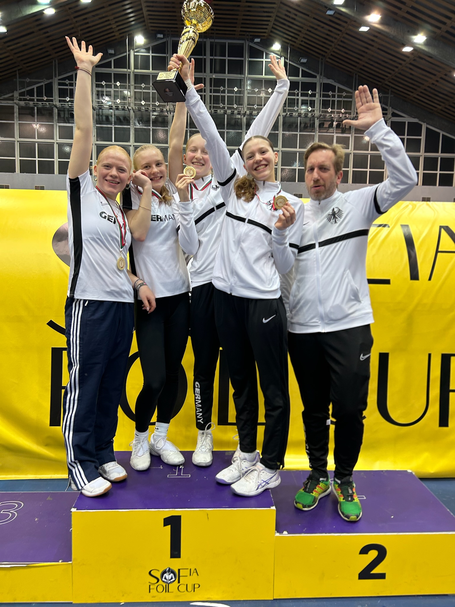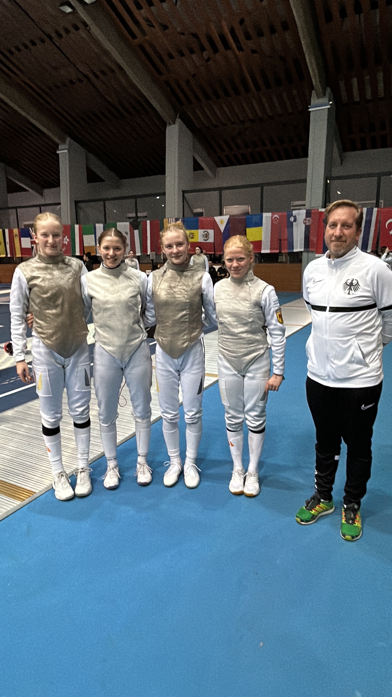 11.02.2025 | EngelmannMarie Bach (10/1) und Florentine Grund (9/1) gewannen am 09.02.25 gemeinsam mit ihren Teamkolleginnen Emma Klostermann (München) und Merle Herwig (Marburg) bei der EM-Generalprobe in der bulgarischen Hauptstadt Sofia die Goldmedaille im Teamwettbewerb beim „Cadet Circuit“ (Weltcup der Altersklasse U17).