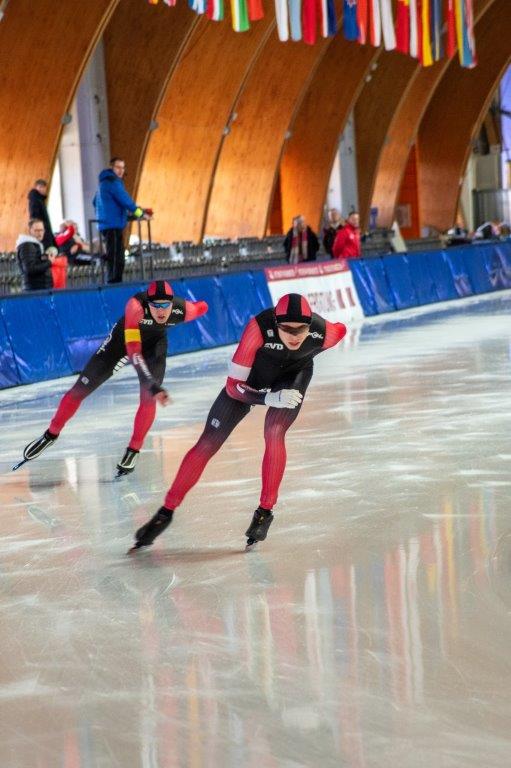 Klasse Leistungen erbrachte dabei Sprinter Lennart Grabe (AK 19), dessen Saisonhöhepunkt mit Platz 3 im Team-Sprint bei der Junioren-WM vor ein paar Wochen schon erfolgreich bestritten war. Dennoch wagte er sich an den Mehrkampf, einschließlich der für Sprinter „untypischen“ 5000m-Strecke und konnte insgesamt einen abschließenden 6. Platz verbuchen. Über 500m krönte er sich zum Deutschen Meister und belegte Platz 4 über 1000m.