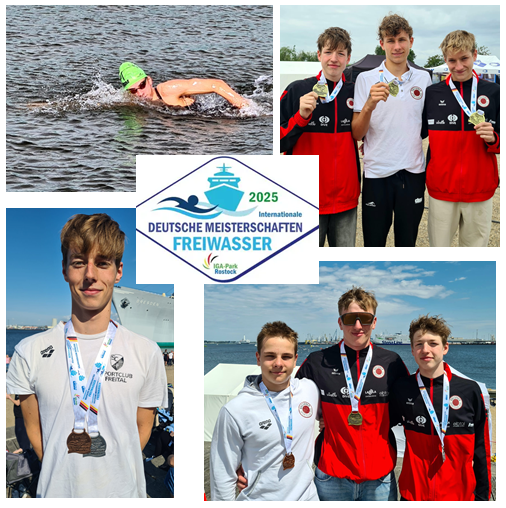 Sie gewannen neben Staffelgold über 3x1250m Freistil der Männer mit Christian Schubert, Thorben Salfitzky (beide S24) und Raphael Zesewitz (Kl. 9S SOS), eine Bronze-, zwei Silber- und drei weitere Goldmedaillen. Mika Kovàcs (S22) gewann die 5km und 10km Freistil in seinem Jahrgang und Marec Pöschmannn (S24) gewann Gold über 2500m Freistil bei relativ niedrigen Temperaturen in der Ostsee. Auch Mika Martin (7/1) konnte seiner Medaillenkollektion, die er bei den Deutschen Jahrgangsmeisterschaften gesammelt hat, noch eine Bronzemedaille über 2500m Freistil hinzufügen. Raphael Zesewitz von der Sportoberschule gewann zwei Silbermedaillen über 2500m und 5000m Freistil.
