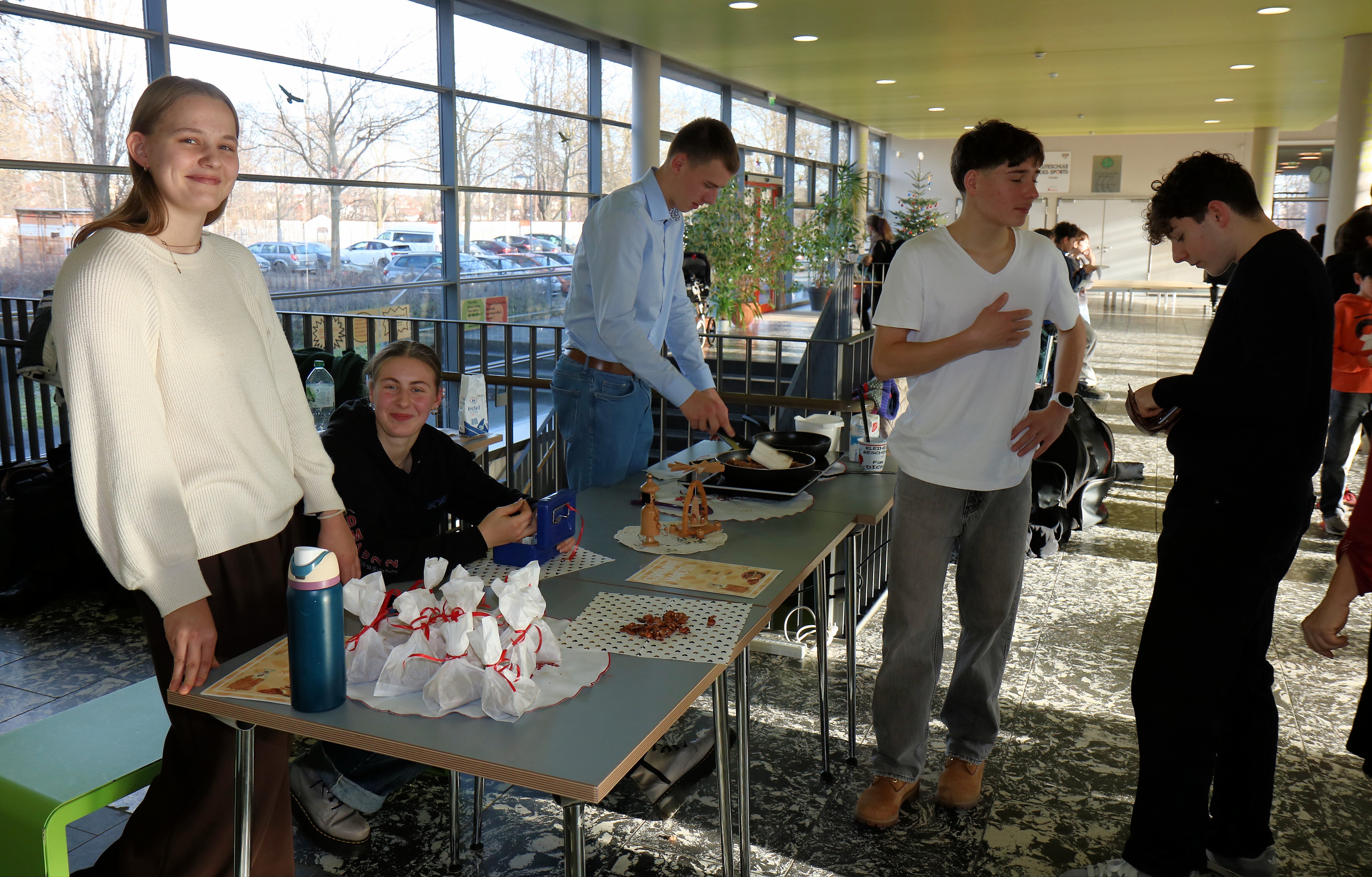 gehen wir am letzten Schultag mit unserem Weihnachtstag verdient in die Weihnachtsferien. Nach einem kleinen aber feinen Weihnachtskonzert wurde aus dem Schulhaus ein Weihnachtsmarkt. Die Klassen und Kurse hatten dafür Stände aufgebaut und die Klassenzimmer weihnachtlich eingerichtet. So konnte genascht, gebastelt und gewonnen werden. Wir danken allen Beteiligten für diesen gelungenen Weihnachtstag.