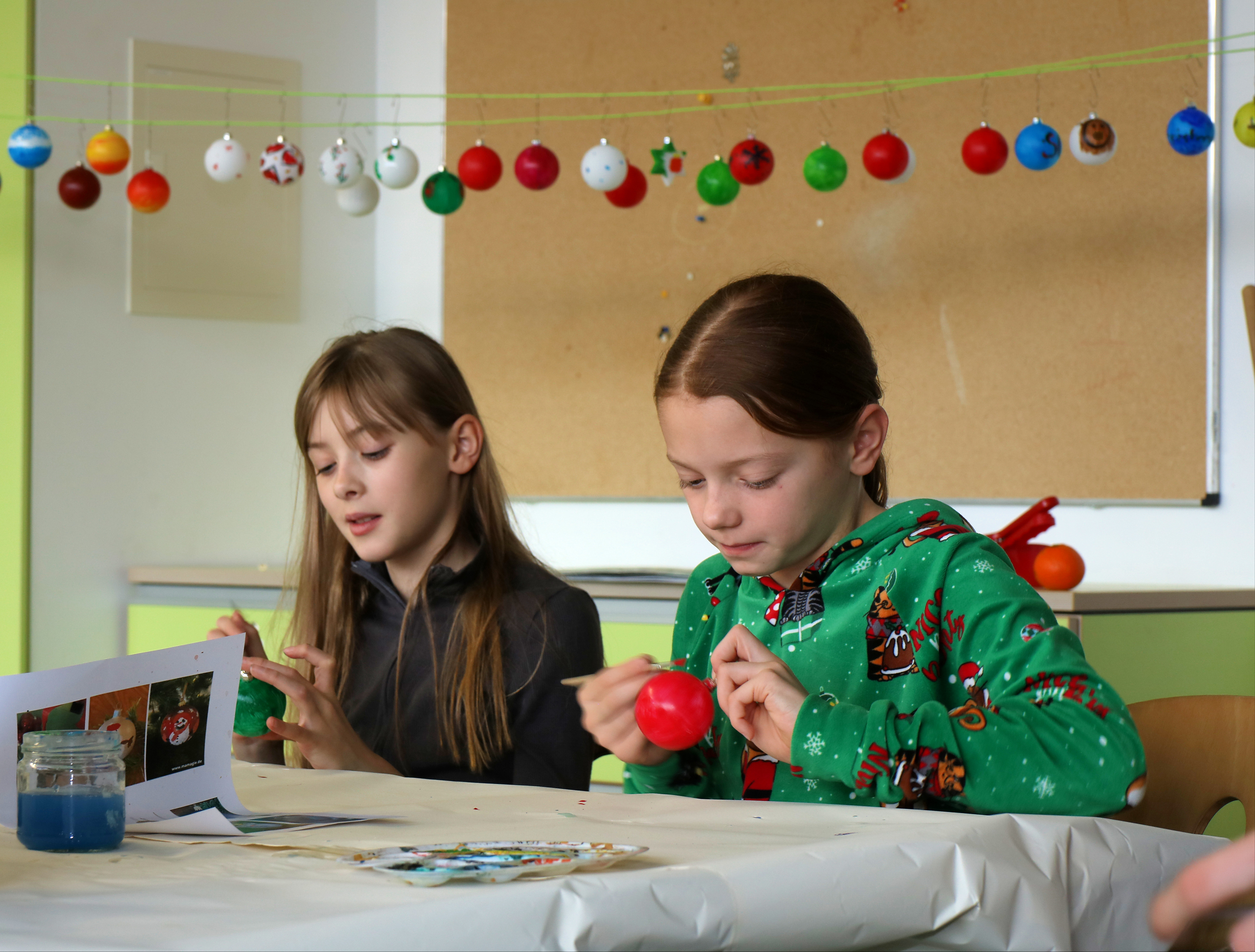 ... beim Bemalen von Weihnachtskugeln