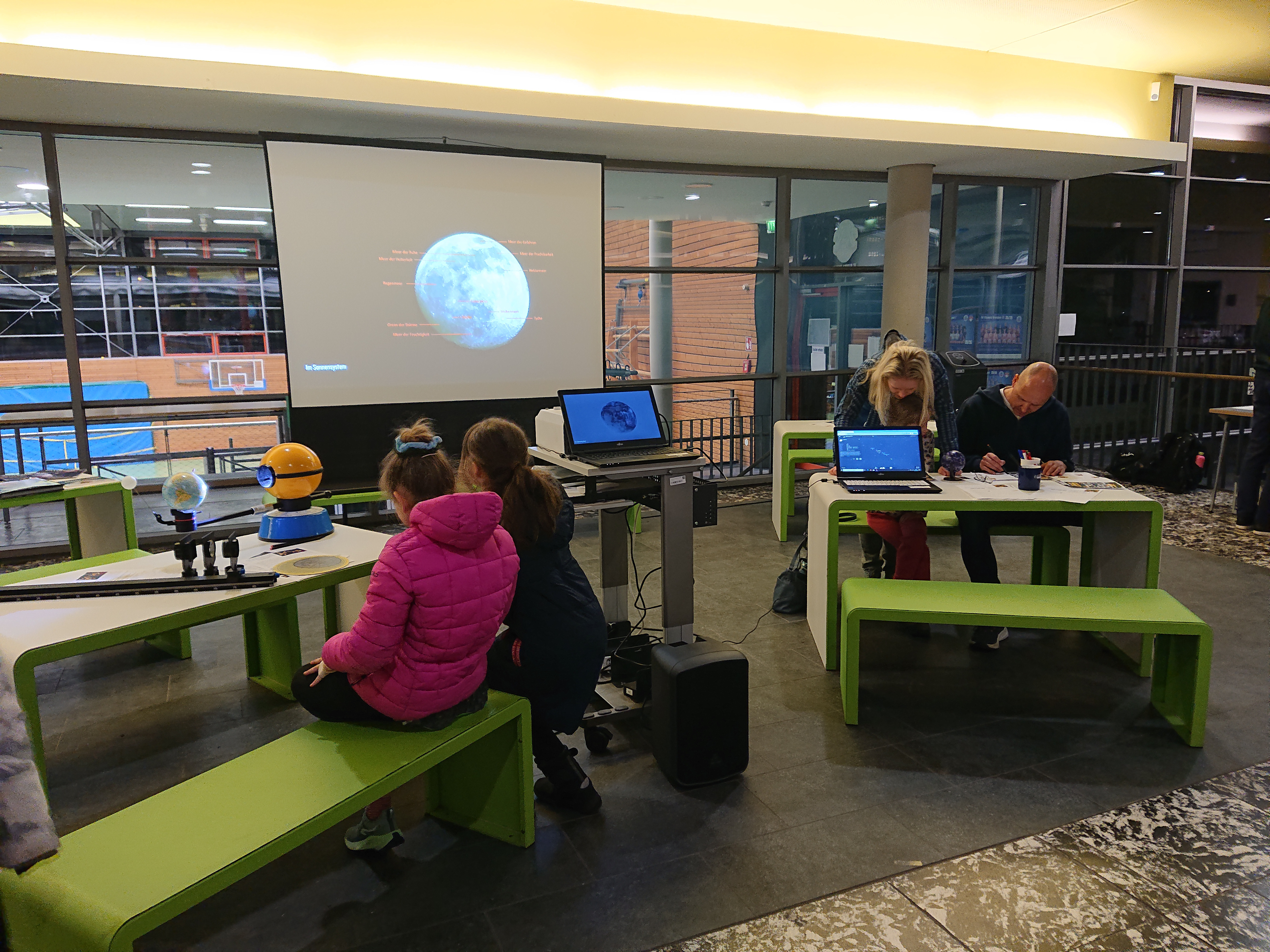 Mitmachstationen im Foyer - Fernrohrbau, Sternenkarte, Stellarium und Kreuzworträtsel