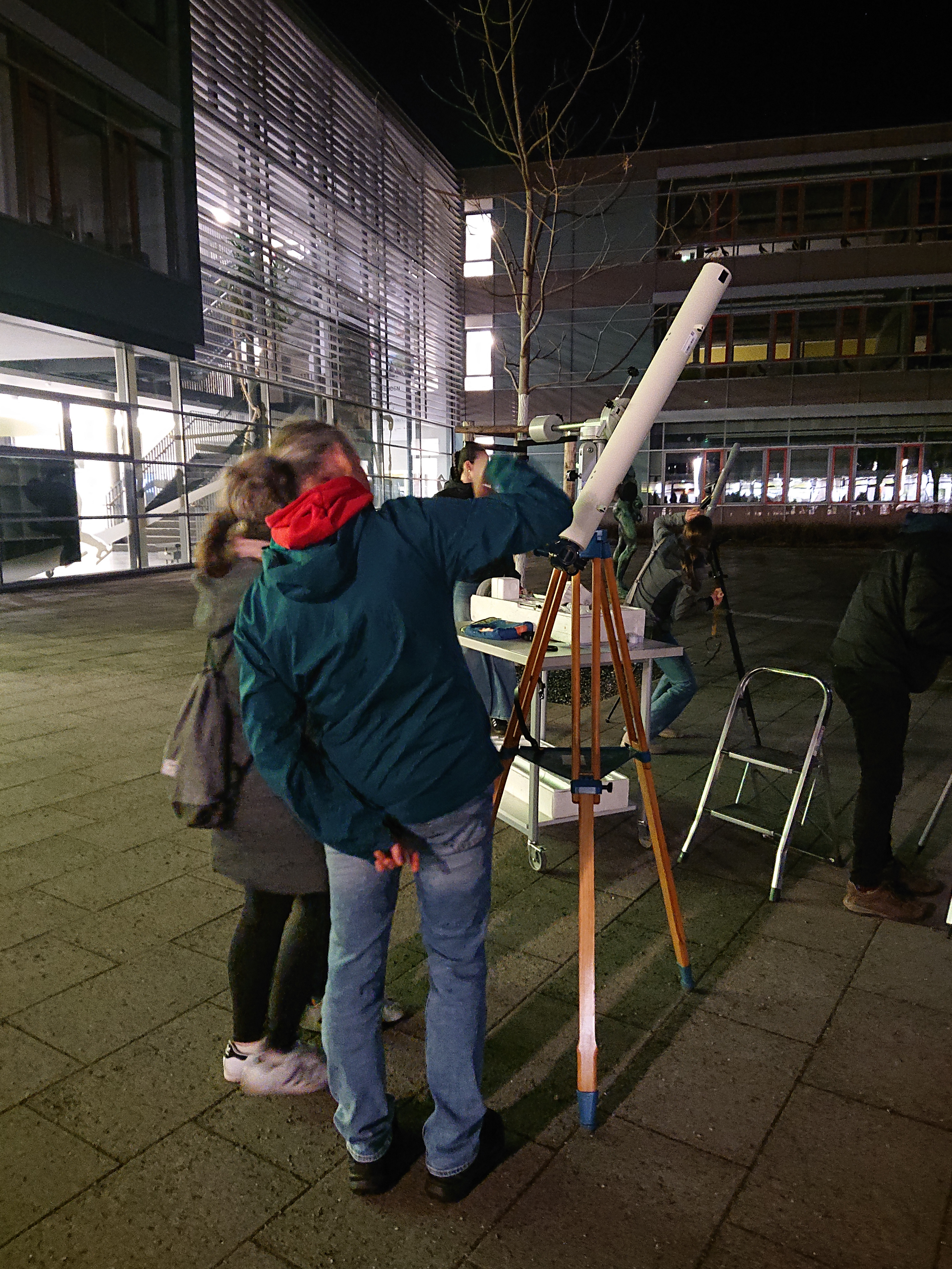 02.03.2026 | HenkerAm vergangenen Freitag fand nach zweimaligem Verschieben der 4. astronomische Beobachtungsabend statt. Bei wolkenlosem Himmel und angenehmen Temperaturen konnten unter anderem Mond, Jupiter und der Orionnebel bestaunt werden. Zusätzlich gab es informative Schülervorträge zum Thema "Raketenstart" (Wilma Sengstock, Frieda Putz 10/1), "Raumfahrt im 21. Jahrhundert" (Zoe Jork, Elina Eberlein 10/1), "Leben auf und die Suche nach Exoplaneten" (KOL Tobias Söhnel 11/4) und "Die Geschichte astronomischer Weltbilder" (Julius Bachmann 10/2).