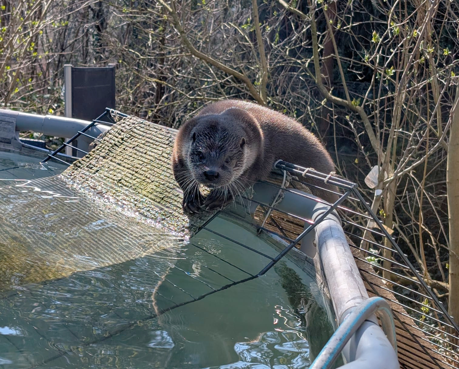 Fischotter "Otto" in seinem eigenen Pool, inklusive Fischen