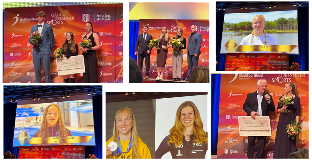 Besonders erfreulich in der Kategorie Nachwuchs gewann Wasserspringerin Katharina Golbs ( Kl.S24) vor Ruderin Selma Ritter (Kl. 11S) und Felix Krones (Ehem. Sport- OS) und in der Kategorie Sportlerinnen belegte Kanutin Nele Reinwardt (Kl. 13S), vor Leichtathletin Vivienne Morgenstern und Schwimmerin Leni von Bonin (beide ehemalige Sportgymnasiastinnen).