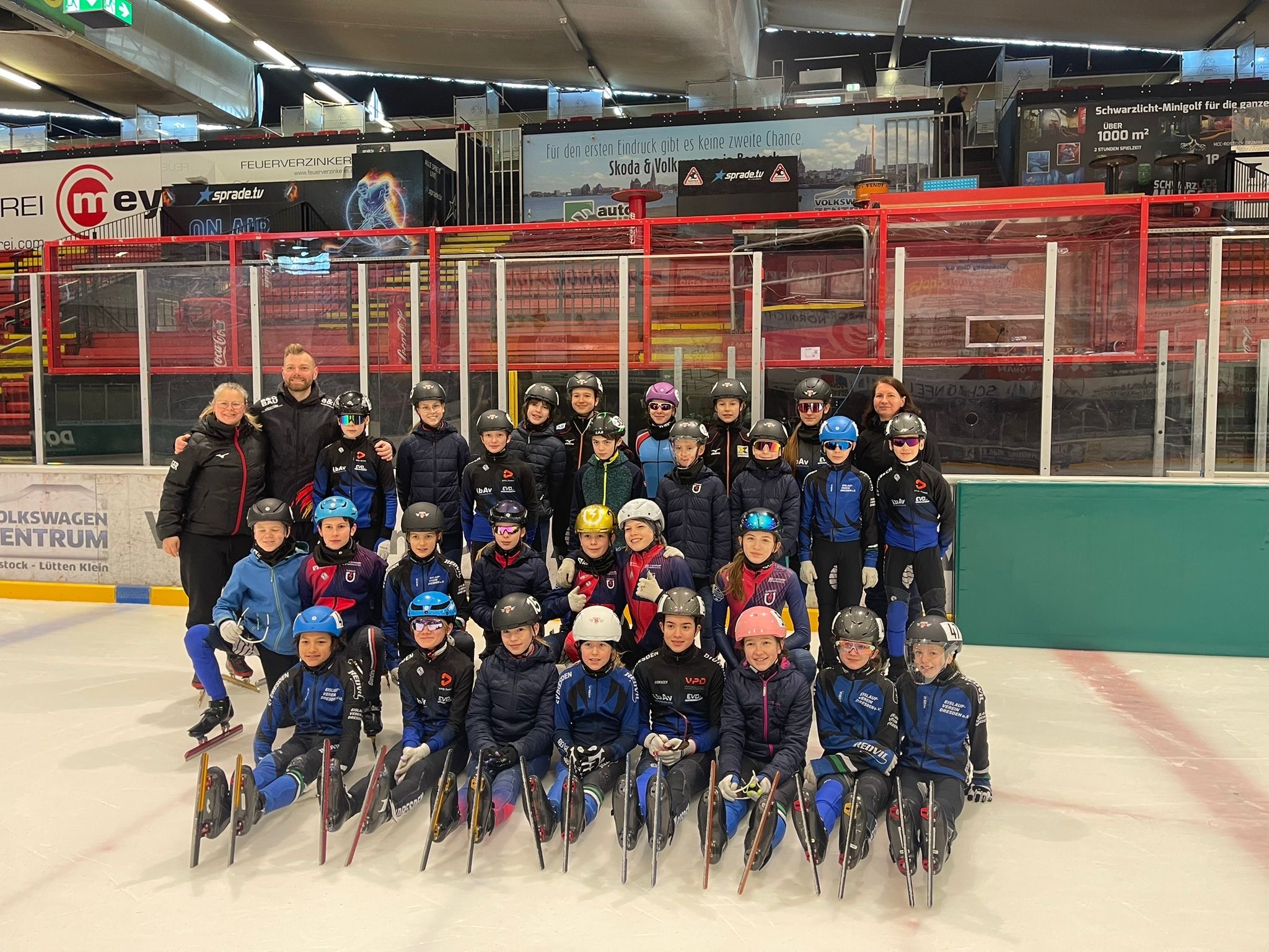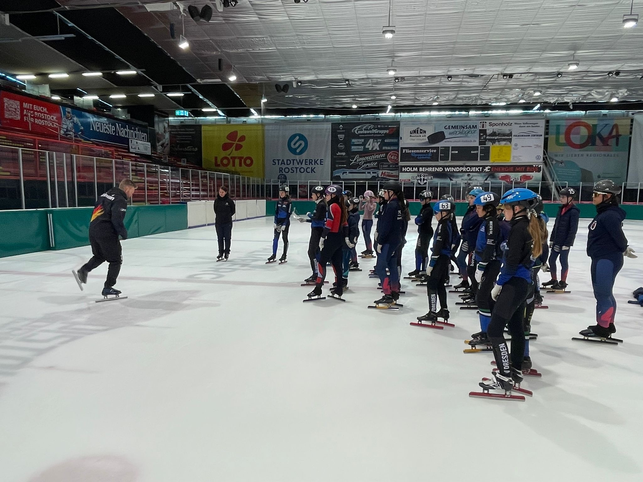 Im Anschluss an diesen Wettkampf verweilten die Sportler noch für vier Tage in Rostock, um an der Nachwuchsakademie teilzunehmen. Aus den Klubs der Stützpunktorte waren 30 Sportler zusammen gekommen, um vom Junioren-Bundestrainer Johannes Markert wertvolle Tipps zu technischen Details oder taktischen Situationen im Wettkampf zu bekommen. Es hat viel Spaß gemacht und der ein oder andere Hinweis führte bei gemeinsamen Übungen on und off ice zu deutlichen individuellen Verbesserungen.