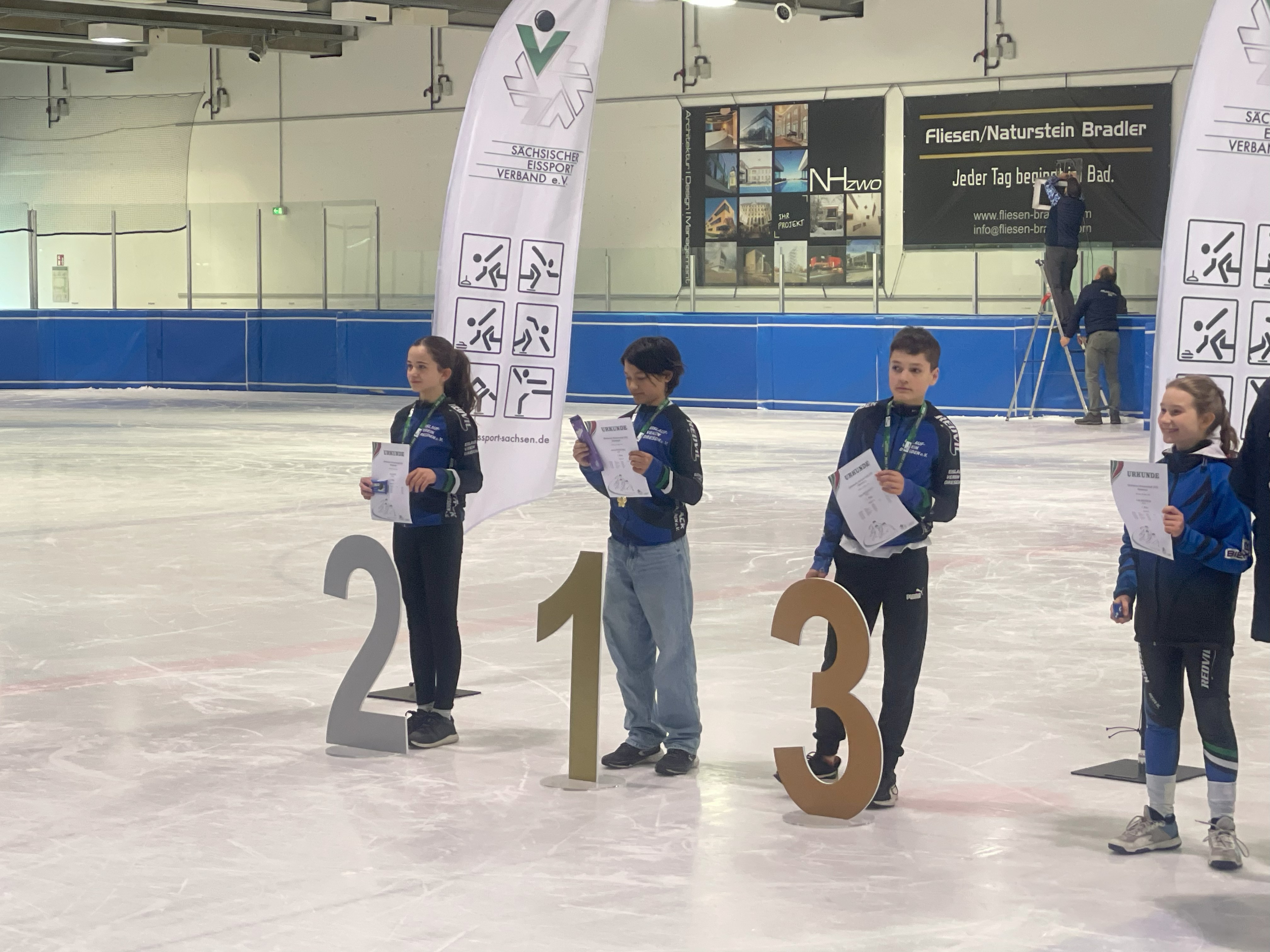 Siegerpodest Junioren E (Janne Pitzschke souverän vor Alice Hein (beide Kl. 5/1))