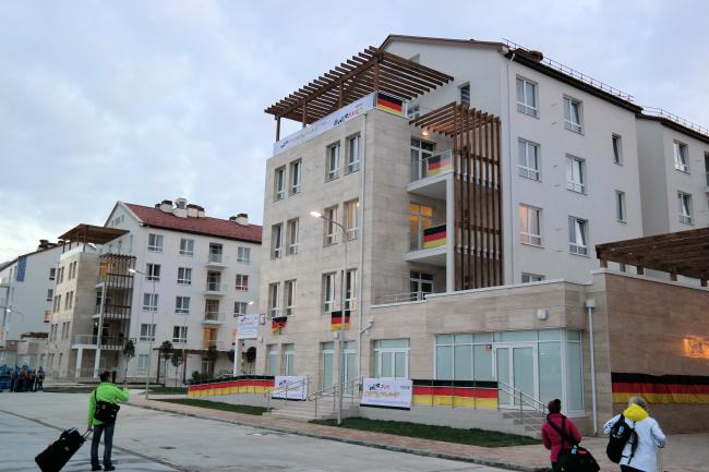 Es heißt ja immer, dass wir Sportler stundenlang von Security-Checks und Passkontrollen aufgehalten werden, aber das kann ich überhaupt nicht unterschreiben. Gerade einmal 10 Minuten mussten wir warten und schon erhielten wir unsere Sportler-Akkreditierung und damit unser Ticket für das Olympische Dorf. Ihr müsst es euch wie eine ganz normale Wohnsiedlung vorstellen. Eine breite Straße, auf denen Busse und Sportler auf Fahrrädern fahren, die eigentlichen 6-stöckigen Wohnhäuser der jeweiligen Länder, ein Mensazelt, Fitness Center und ein Zelt für Freizeitaktivitäten. Außerdem gibt es ein eigenes Krankenhaus, die Dopingkontrollstation und zahlreiche so genannte Promotion Center. Doch das besondere an diesem Dorf ist eben das „Feeling“, einfach die gesamte Atmosphäre. Das Gefühl, ein Teil von der großen Sportwelt zu sein, jeden Tag anderen Profistars über den Weg zu laufen und im Mittelpunkt zu stehen ist unbeschreiblich und besonders. Noch dazu ist es ein Gefühl oder Erlebnis, was man sich nicht kaufen kann, da man wirklich Leistung bringen musste, um dort starten zu dürfen!