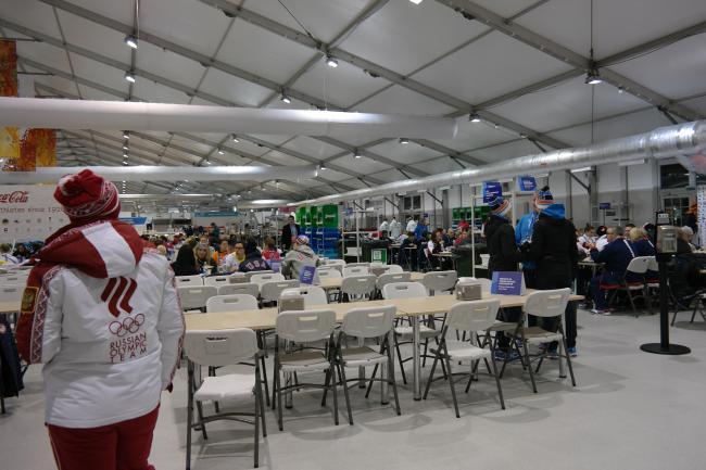 Die nächsten Tage war zunächst erst einmal trainieren angesagt. Das tägliche Highlight waren die Mahlzeiten. Ein riesiges Zelt mit einem eigenen McDonald’s eingebaut und so vielen Gerichten, wie ich noch nie in meinem Leben unter einem Dach gesehen hatte. Von der asiatischen über die russische, europäische, italienische, vegetarische Küche bis zur Salat-, Dessert- und Obsttheke war wirklich alles dabei, was das Herz begehrt und es wurde nie langweilig! Die Eishalle war wie der Rest der gesamten Anlage gigantisch und echt super. Zu Beginn trainierten wir noch in einer extra Trainingshalle, aber bald dann nur noch im Iceberg Skating Palace. Es war auch bei den Trainingseinheiten jedes Mal eine besondere Spannung zu spüren und ich konnte es kaum erwarten.