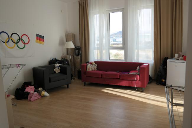 Seit Wochen freute ich mich auf das große Abenteuer Olympia. Doch ich musste zunächst 3 Tage lang bangen, ob ich mit meiner Grippe nicht zu ansteckend für die anderen Sportler bin. Letztendlich gab der deutsche Sportarzt aber grünes Licht und am Dienstag ging es zunächst nach Frankfurt. Am nächsten Morgen sahen wir ihn also nun: Den Flieger, der uns zum größten Sportevent nach Russland bringen sollte. Doch vorher wurden wir noch offiziell verabschiedet. Am Gate standen zahlreiche Sportler, doch mindestens genau so viele (wenn nicht sogar noch mehr) Journalisten. Eine Frau vom DOSB schnappte mich, positionierte mich vor den Journalisten und fragte einfach in die Runde, ob jemand Interesse an Anna Seidel hätte. Und ich konnte gar nicht so schnell realisieren, was geschah, denn Dutzende von Mikrophonen wurden auf mich gerichtet und die ersten Fragen gestellt. Dies und ein anschließendes Foto, bei dem ich neben Maria Höfl-Riesch stand, gaben mir schon einen Vorgeschmack auf das, was mich in Sotschi also erwarten würde.